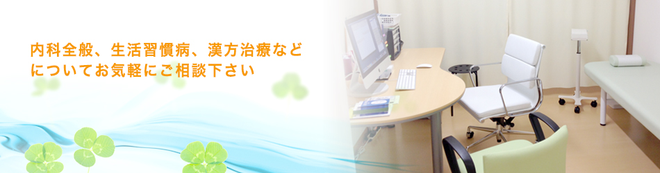専門の胃腸科を中心に、高血圧、糖尿病、脂質異常症などの生活習慣病や、カゼ、インフルエンザ、胃腸炎などの一般急性疾患などを含めた内科全般について診療いたします。特に内視鏡検査に力を入れており、最新の機種を用いた、苦痛の少ない検査を心掛けており、開院以来、多くの方々に受けていただきました。その他、エコーも高性能機を導入し、腹部臓器の観察のみならず、甲状腺疾患の発見や、動脈硬化の評価に役立てております。さらに近年は、漢方薬の効果にも着目しております。西洋薬ではなんともしがたい症状が、漢方薬により改善するケースもまれではなく、日々患者様より勉強させていただいております。